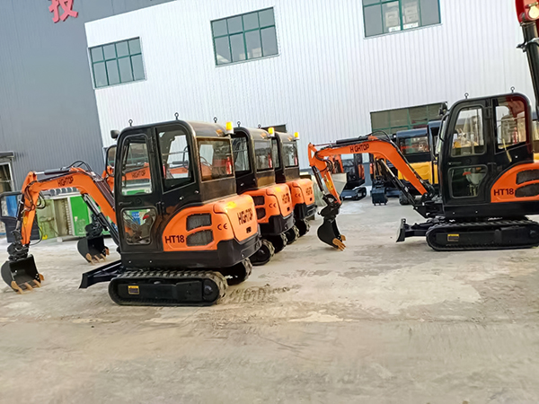 此次發貨的微型挖掘機型號為HT18,這是一款緊湊型挖掘機,這4臺1噸迷你挖掘機,是客戶定制的特殊機型,機身小巧靈活,360°無尾旋轉,配備K橡膠履帶可伸縮底盤,前窗可開可關,可以方便地更換挖掘機的任何配件。