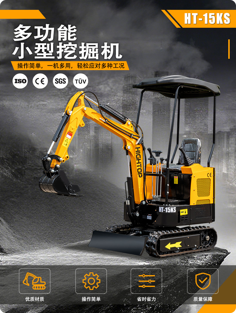 主要零部件選用可靠產品,發動機為科普 KD2V80,主閥為騰飛,為整機的穩定運行提供了有力保障。無論是小型工程施工、庭院改造還是農業作業,HT15KS 微型挖掘機都能憑借其靈活高效的特點,成為得力助手。